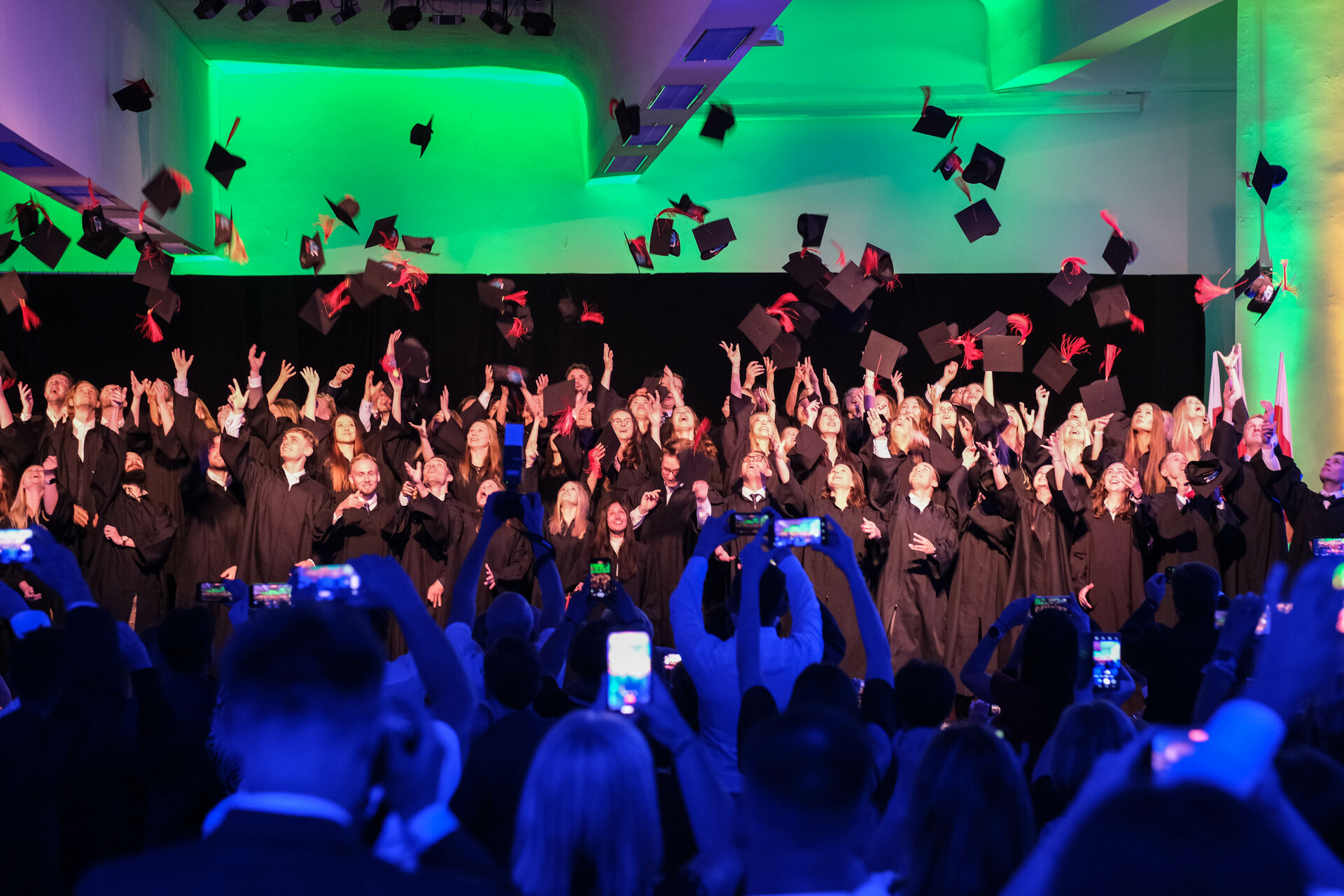 Absolwenci kierunku lekarskiego 2023 wykonują tradycyjny rzut biretem; fot. J. Czarnecka